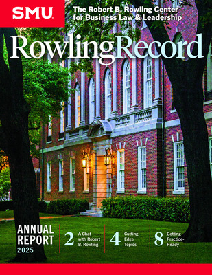 The Rowling Record is an annual report series from the SMU Rowling Center for Business Law & Leadership, highlighting the Center's activities, student engagement, faculty thought leadership, and alumni accomplishments. Each edition reflects the Center’s dedication to fostering future leaders in global business law through insightful updates on recent achievements and initiatives.